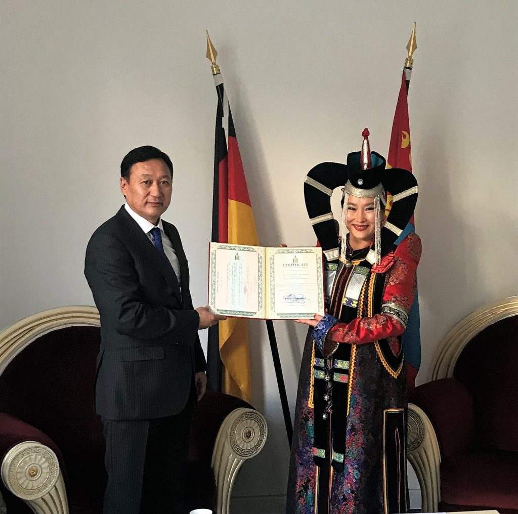 Монгол Улсаас ХБНГУ-д суугаа Элчин сайд Д.Ганбат Монгол Улсын Соёлын элчээр томилогдсон Самдандамбын Бадамхоролд Соёлын элчийн гэрчилгээг 2017 оны 10 дугаар сарын 19-ний өдөр гардуулав. Уртын дуучин Самдандамбын Бадамхорол нь 1998 оноос “Туурайн Төвөргөөн” хөгжмийн их наадам зэрэг соёлын арга хэмжээг зохион байгуулж ирсэн туршлагатай. Тэрээр 2005 оноос ХБНГУ-ын Фрайбург хотод амьдарч байгаа бөгөөд тус хотод Монголын Соёлын төвийг хариуцан ажиллаж ирсэн юм.