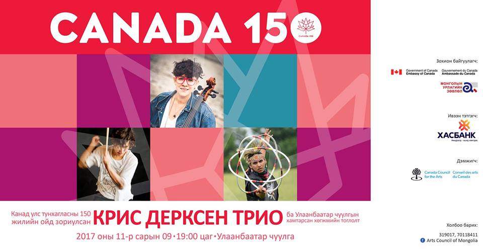Канадын Элчин сайдын яамны урилгаар Монголд айлчлан ирж буй Канадын уугуул иргэн, уран бүтээлч Крис Дерксены “Cris Derksеn Trio” хамтлагийн тоглолтыг Хас Банк санхүүжүүлэн, Канадын Урлагийн зөвлөл дэмжиж, Монголын Урлагийн Зөвлөл тоглолтыг зохион байгуулж байна. Тоглолт энэ сарын 9-нд болно.