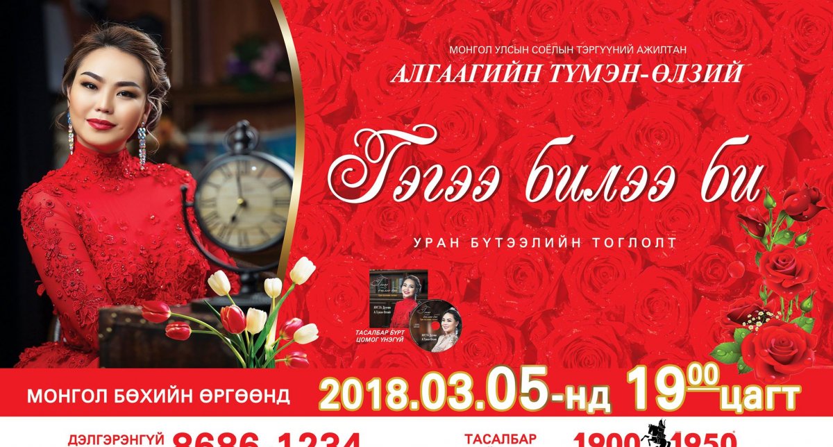 Дашрамд дуулгахад МУСТА А.Түмэн-Өлзий өнөөдөр болох “Гэгээ билээ би” тоглолтондоо одонтой ээжүүдээ онцгойлон урьсан бөгөөд өнгөрсөн баасан гаригт Монгол бөхийн өргөөнөө олон сайхан одонтой ээжүүдээ хүндэтгэн урьж, шинэхэн цомгоо тоглолтынхоо урилгатай гардуулсан билээ. Энэ тухай сайхан мэдээллийг ЭНД ДАРЖ сонирхоорой. Түүнчлэн өнөөдрийн тоглолтын үзэгч бүрт шинэхэн цомгоо бэлэглэж байгаа бөгөөд өнөөдрийн тоглолтын тасалбар тун цөөхөн үлдсэн гэнэ. Ийнхүү дуунд дуртай дуучин түмэн минь МУСТА А.Түмэн-Өлзийгийн “Гэгээ билээ би” хэмээх тоглолтын талаарх дэлгэрэнгүй мэдээллийг: 86861234, 99883031 утсаар лавлаж, амжиж тасалбараа захиалаарай.