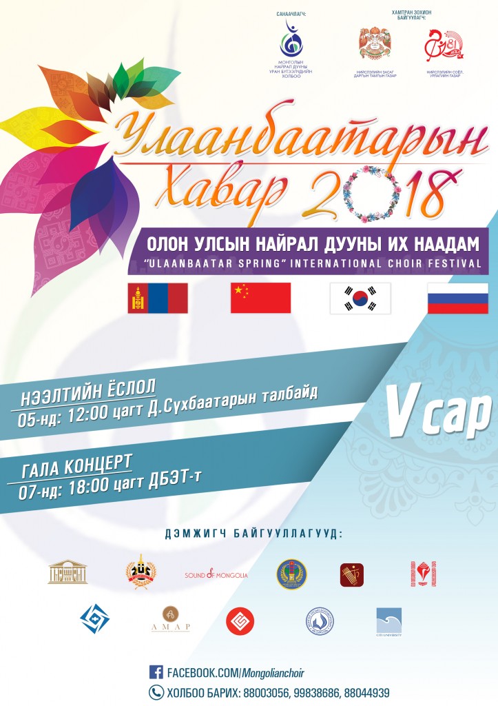 Нийслэлийн Засаг даргын 2018 оны захирамжийн дагуу Нийслэлийн Засаг даргын Тамгын газар, Нийслэлийн Соёл, урлагийн газрын дэмжлэгтэй хоёр дахь удаагаа “Улаанбаатарын Хавар” олон улсын найрал дууны их наадмыг зохион байгуулах гэж байна.