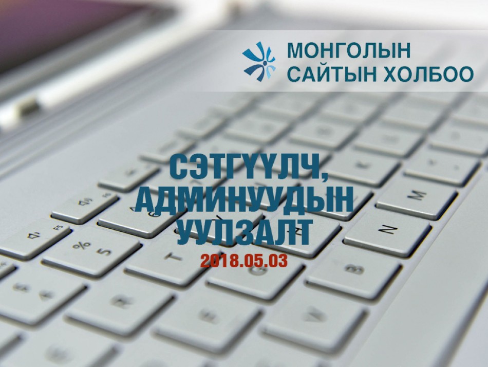Та бүхнийг “Сэтгүүлч, админуудын уулзалт-зөвлөгөөн”-д хүрэлцэн ирэхийг урьж байна. Уулзалт зөвлөгөөн 2018 оны тавдугаар сарын 3-ны өдөр 14 цагаас МУИС-ийн Номын сангийн 202 тоот тэнхимд болно.