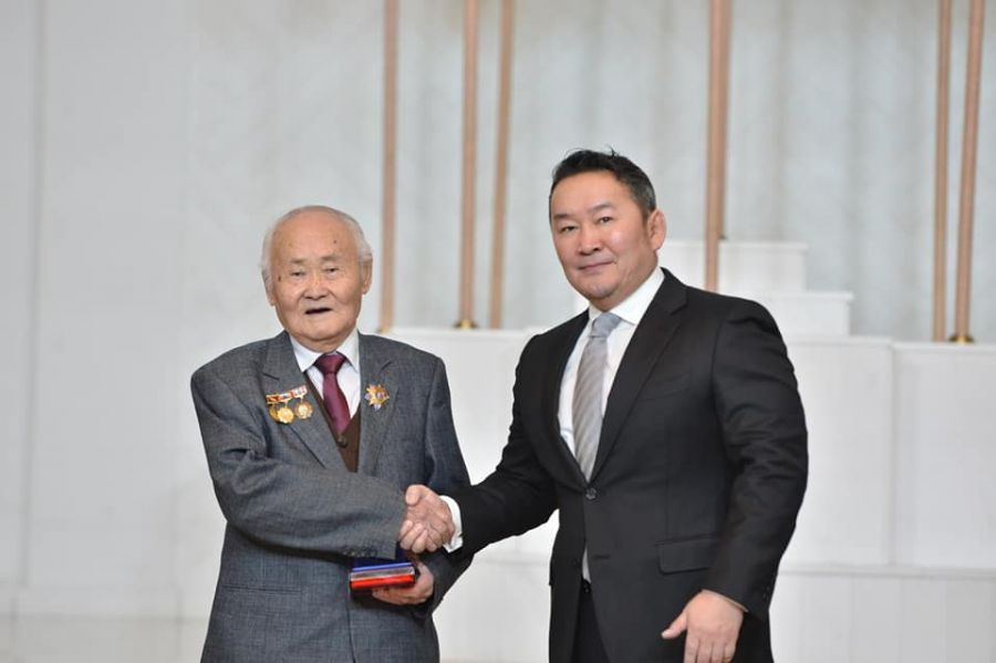 "100 насныхаа босгон дээр төр түмний хишиг ийм өндөр шагнал авсандаа баярлаж байна. Монгол Улсдаа 86 жил завсаргүй зүтгэсэн хүн. Тийм учраас төр минь үнэлж энэ шагналыг өгсөн байх гэж бодож байна. Нас минь хэдий дээр гарсан ч хоёр таягтайгаа байгаа. Миний хоёр таяг бол бичих, унших хоёр." гэлээ.