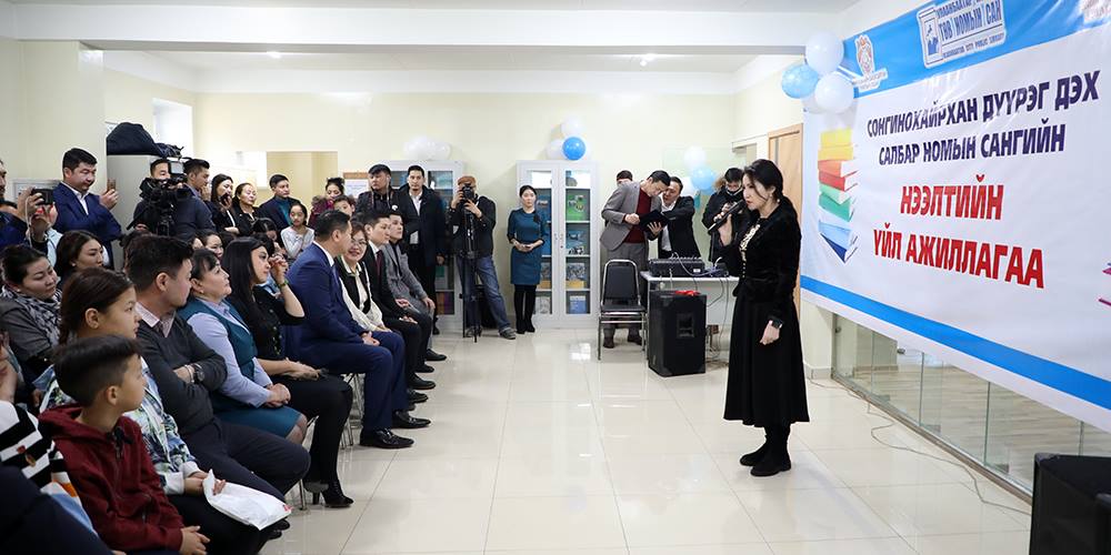 “Нийслэлийн Засаг даргын 2016-2020 оны үйл ажиллагааны хөтөлбөрт номын сангуудыг шинэчлэн засварлах, системийг цахим болгох, номын фондыг шинэчлэх, танхимууд шинээр байгуулах гэсэн заалтууд бий. Энэ заалтууд эхнээсээ хэрэгжээд явж байна. 2018 онд гурван номын санг шинэчлэхээр нийслэлийн төсөвт 500 сая төгрөг суулгаад ажилласан. Энэ ажлын эхлэл болгож Сонгинохайрхан дүүрэг дэх Улаанбаатар хотын Төв номын сангийн салбарыг нээгээд байна” хэмээн Нийслэлийн Засаг даргын орлогч Ш.Анхмаа ярилаа.