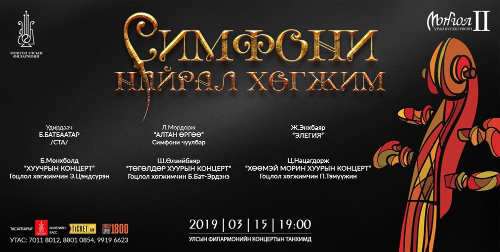 Тоглолтод Улсын Филармонийн симфони найрал хөгжим оролцоно. Удирдаач Б.Батбаатар /МУСТА/.
