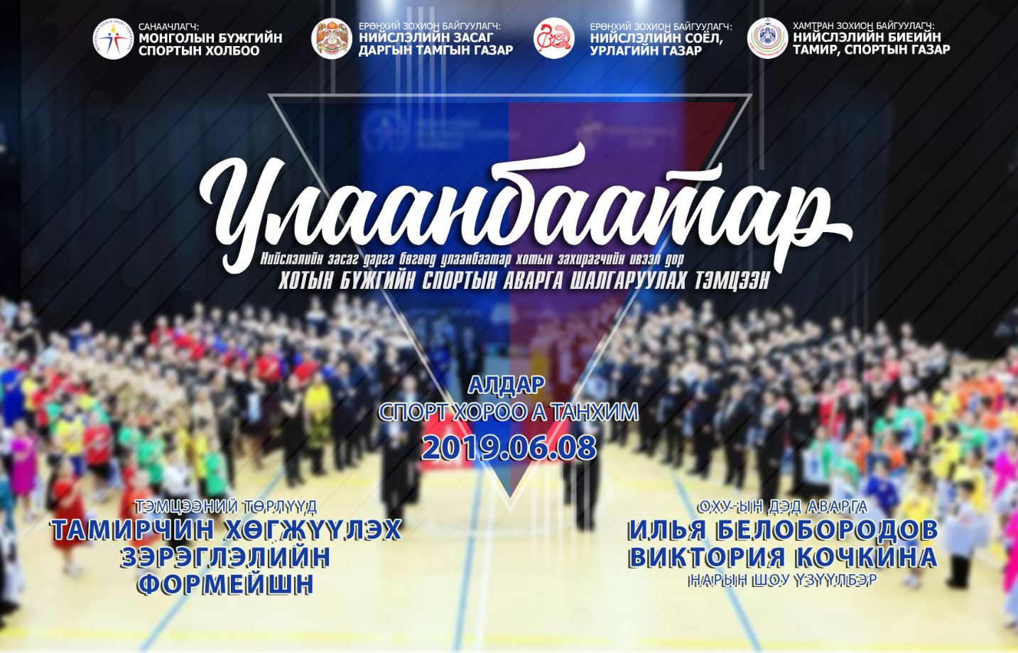 Нийслэлийн Засаг даргын 2019 оны А/479 дүгээр захирамжийн дагуу “Улаанбаатар хотын бүжгийн спортын аварга” шалгаруулах тэмцээн зургаадугаар сарын 8-ны өдөр “Алдар” спорт хорооны бүжгийн танхимд зохион байгуулагдах гэж байна. Тус тэмцээнийг 2002 оноос эхлэн нээлттэй тэмцээн болгон зохион байгуулж ирсэн бөгөөд Улаанбаатар хотод үйл ажиллагаа явуулж буй бүжгийн спортын клубийн тамирчид ур чадвараа сорьсоор ирсэн.