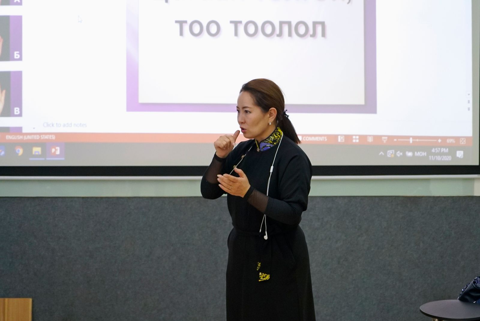 Хичээлийг сонсголын бэрхшээлтэй хүний талаарх үндсэн ойлголт, сонсголгүй иргэдийн соёл, онцлог, дохионы хэлний ангилал, хурууны хөдөлгөөн, гарын үндсэн байрлал, цагаан толгой, хурууны үсэг, тоо, тоолол, мэндлэх, танилцах, төлөөний үг, сэтгэлийн хөдөлгөөн, ажил мэргэжил, харилцан яриа зэрэг сэдвийн хүрээнд интерактив хэлбэрээр явууллаа.