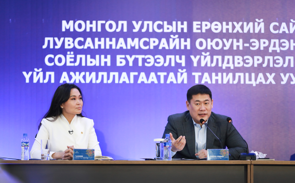 Соёлын сайд Ч.Номин соёлын бүтээлч үйлдвэрлэлийн салбарын суурь судалгаа, статистик, тоон мэдээлэл, энэ салбарыг хөгжүүлэх үндэсний бодлогын талаар товч мэдээлэл өгөв. Уулзалтад дүрслэх урлаг, хувцас загвар, дижитал дизайн, дуу хөгжим, кино урлагийн салбарын төлөөлөл өнөөгийн байдал, тулгамдаж байгаа асуудлаа танилцууллаа.