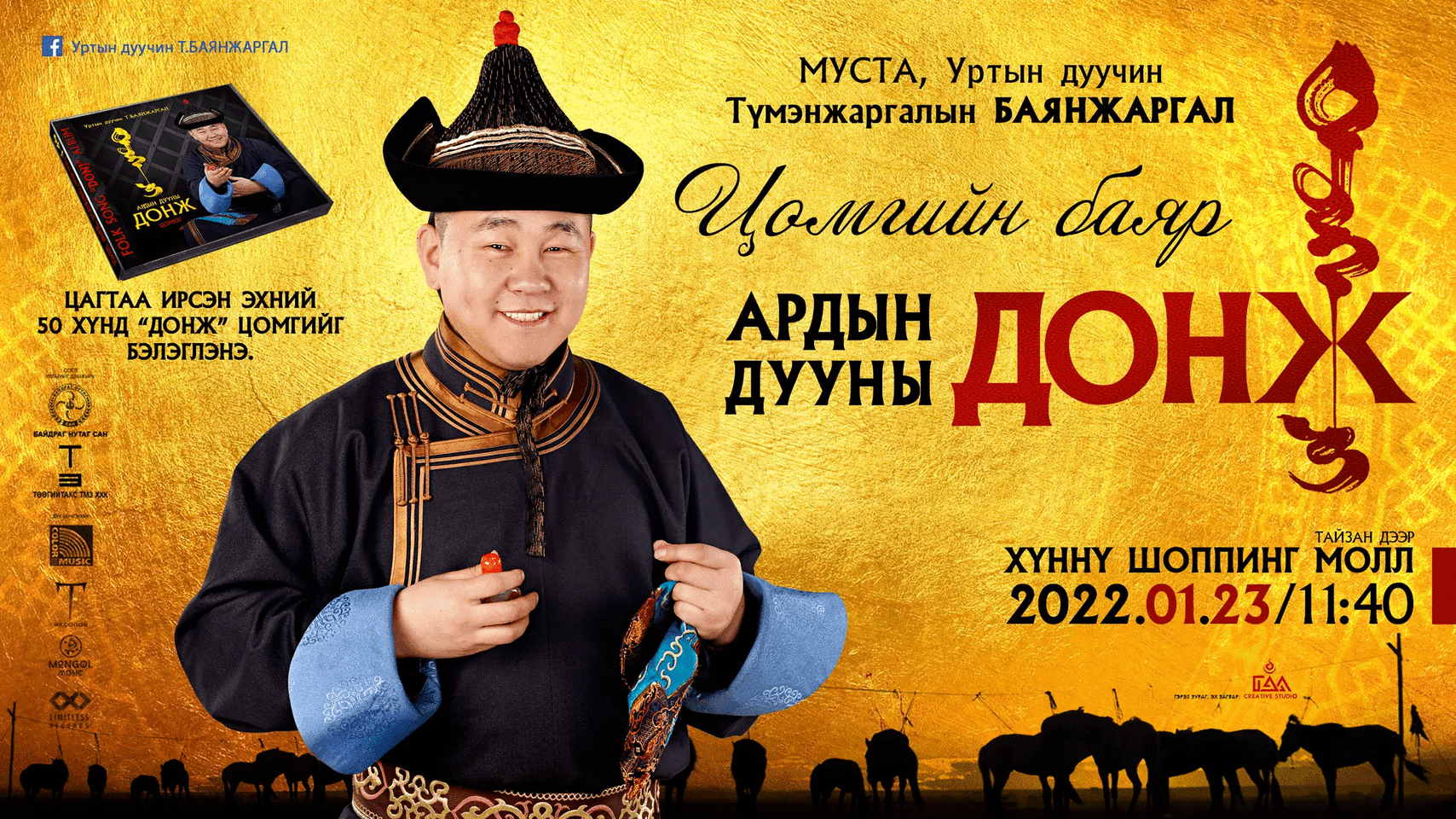 Уртын сайхан дуунуудыг уянгалууланхан дуулж, дуунд дуртай дуучин түмнийхээ хайр хүндлэлийг хүлээсэн МУСТА, Уртын дуучин Т.Баянжаргал “Донж” хэмээх нэртэй ардын дууны цомгоо өлгийдөн авч, цомгийн баяраа энэ сарын 23-нд буюу ирэх Ням гаригийн Морь цагт Хүннү шоппинг моллын тайзнаа хийхээр болжээ.