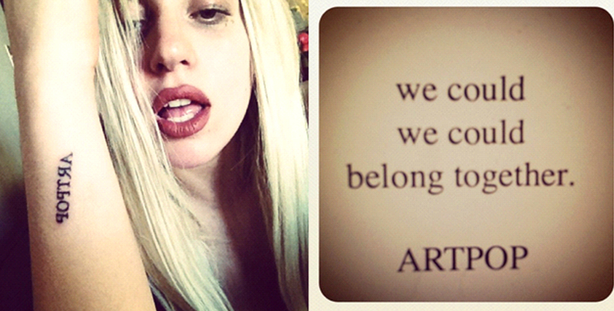 Мөн тэрбээр Instagram-д хоёр зураг байрлуулсны нэг нь түүний шинэ шивээсийн зураг бол нөгөөх нь “Artpop” төслийн дууны үгийг бичиж, хэвлэсэн цаасны зураг байжээ.