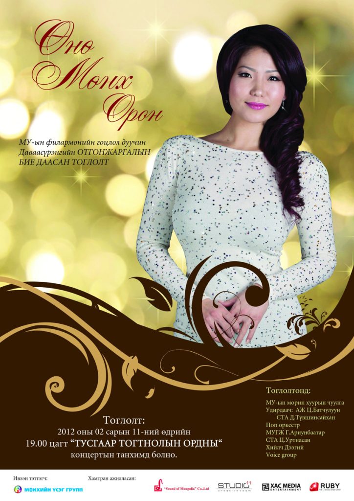 “Voice” хамтлагийн дуучин Д.Отгонжаргал ирэх хоёрдугаар сарын 11-нд бие даасан анхны тоглолтыг хийх гэж байна. Тэрбээр “Өнө мөнх орон” хэмээн тоглолтоо нэрлэжээ. Түүний анхны бие дааасан тоглолтод Морин хуурын чуулга, Улсын филармонийн симфони найрал хөгжимчид, удирдаачаар Н.Бүтэнбаяр, урилгаар Гавьяат жүжигчин Г:Ариунбаатар, Соёлын тэргүүний ажилтан Ц.Уртнасан, хийлч Ч.Дэлгэрцэцэг болон “Voice” групп оролцох юм.