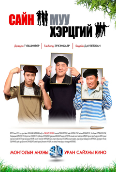 Кино урлаг сүүлийн жилүүдэд хурдацтай хөгжиж байгаа билээ. Манай улс ч энэ хөгжлөөс хоцрохыг хүсэхгүй нь лавтай. Тиймээс “Ялгуун”, “Метеор”, “А plus” студийн уран бүтээлчид хамтран удаан хугацаанд судалсны эцэст Монголын анхы 3D киноны зураг авалтыг амжилттай хийж дуусгалаа. А.Миеэгомбын бүтээл “Сайн, муу, хэрцгий” нэртэй энэхүү кино толгойтой бүхэн нь төрийн алба руу шургалахыг хүсдэг болсон өнөөгийн нийгмийг адал явдалт, инээдмийн төрлөөр дамжуулан шүүмжилжээ.