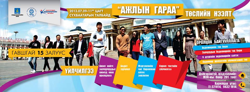 МЗХ-ноос санаачилан Хөдөлмөрийн яам, МЗХ-ны дэргэдэх Залуучуудын Хөдөлмөрийн Төв Биржтэй хамтран хэрэгжүүлж буй “Ажилтай, орлоготой Монгол залуу” хөтөлбөрийн нээлт саяхан болж хөдөө орон нутагт ажиллах “Сумын залуус” төсөлд хамрагдсан “Дөрвөн бэрх” багийн гишүүдэд ажлын үнэмлэх, тугийг гардуулан өгсөн. Тэгвэл “Сумын залуус”, “Ажлын гараа”, “Цагийн ажил” гэсэн 3 төслийг хэрэгжүүлж байгаа “Ажилтай, орлоготой Монгол залуу” хөтөлбөрийн “Ажлын гараа” төслийн нээлт маргааш буюу 07-р сарын 09-ний 12 цагт Сүхбаатарын талбайд болох юм байна.